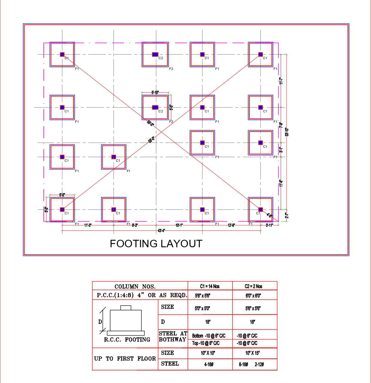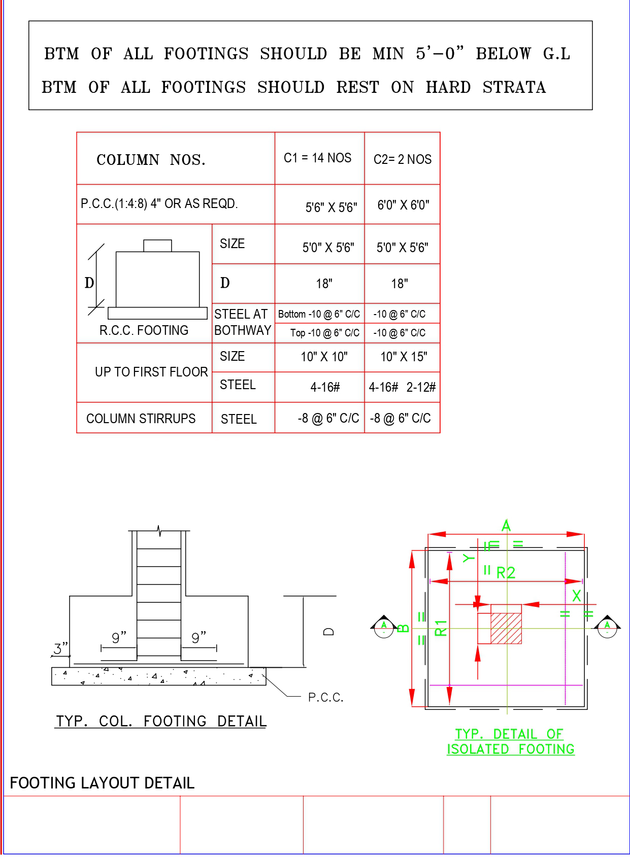 | 1 | Footing P.C.C. | M-10 | 1:3:6 | IS 456 |